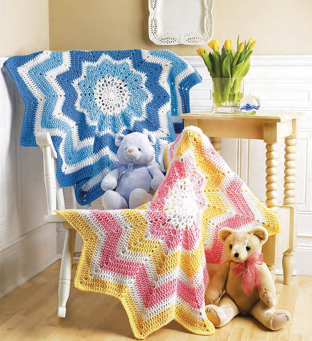 Crochetez cette couverture pour bébé en utilisant le fil Mary Maxim Starlette . Nécessite 3 pelotes et un crochet taille K-10,5 (6,50 mm) .