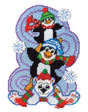 These adorable penguins are stacked on top of a cheerful polar bear ready for fun in the snow. Kit includes 7 mesh plastic canvas, acrylic yarn and pattern. Size 9.5 x 13.5".