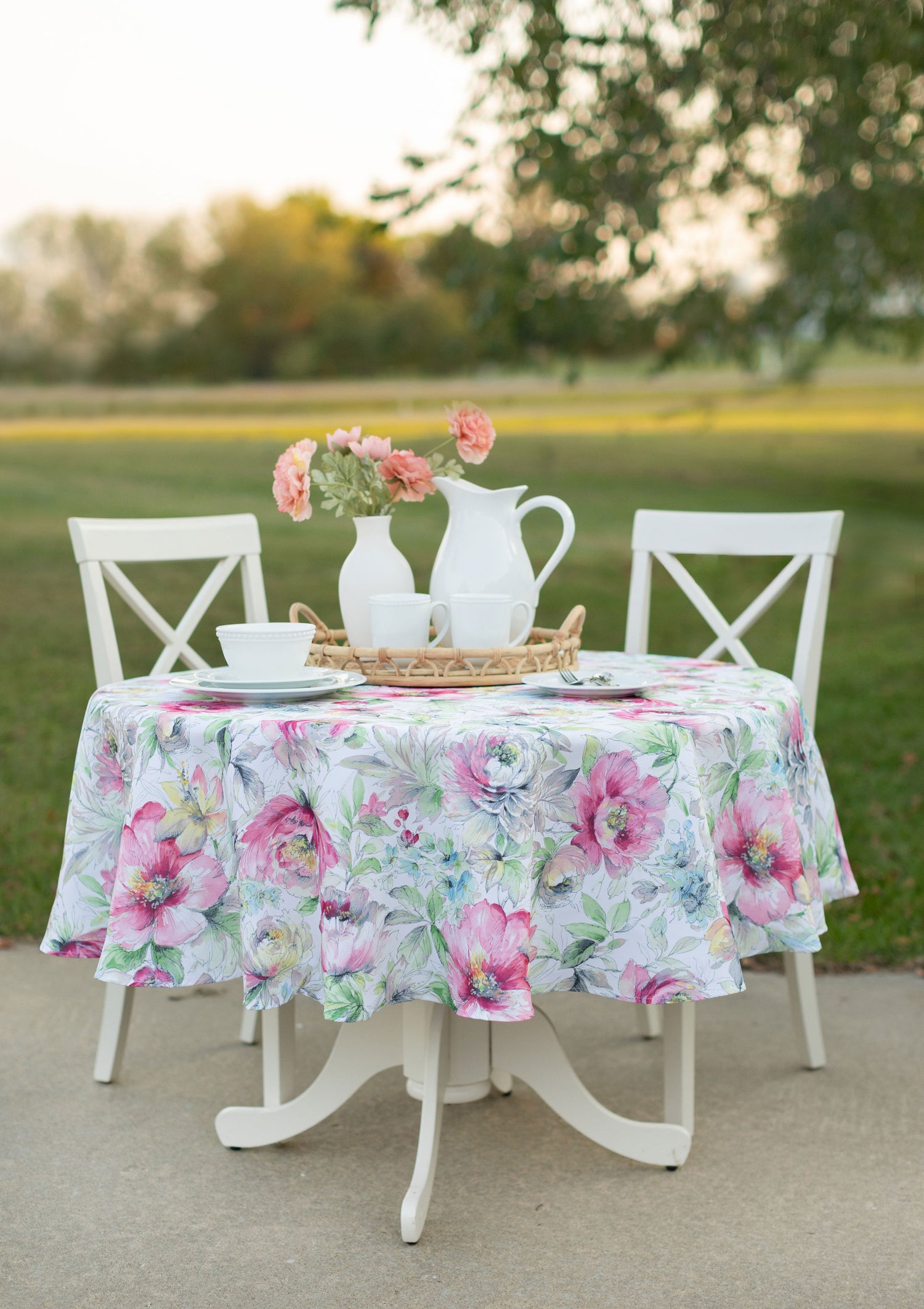 Bring a splash of garden-fresh charm to your table with the Bellarose Tablecloth! Featuring delicate pink florals that brighten any setting, this versatile beauty works equally well indoors or out. Crafted from durable, high-quality polyester, it's built to withstand everyday use and the elements. Best of all, cleanup is a breeze—simply toss it in the machine and you're done. Perfect for casual dinners, garden parties, or adding a cheerful pop of color to your patio gatherings.