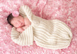 Gardez votre bébé bien au chaud dans cet adorable sac cocon avec un magnifique accent de rose. Le modèle se tricote avec 2 fils ensemble. Taille nouveau-né 22" de long. Le kit comprend le fil et le motif Mary Maxim Aran Irish Twist. Nécessite un crochet de taille L-11 (8,00 mm).