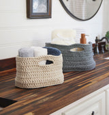 Un ensemble de paniers à utiliser dans n'importe quelle pièce de votre maison. Le kit comprend du fil Mary Maxim Home et un motif pour fabriquer 2 paniers. Nécessite un crochet K-10,5 (6,5 mm). Tailles 9,5 x 6 x 5,5" et 12,5" x 9" x 6,5". Crochet intermédiaire.