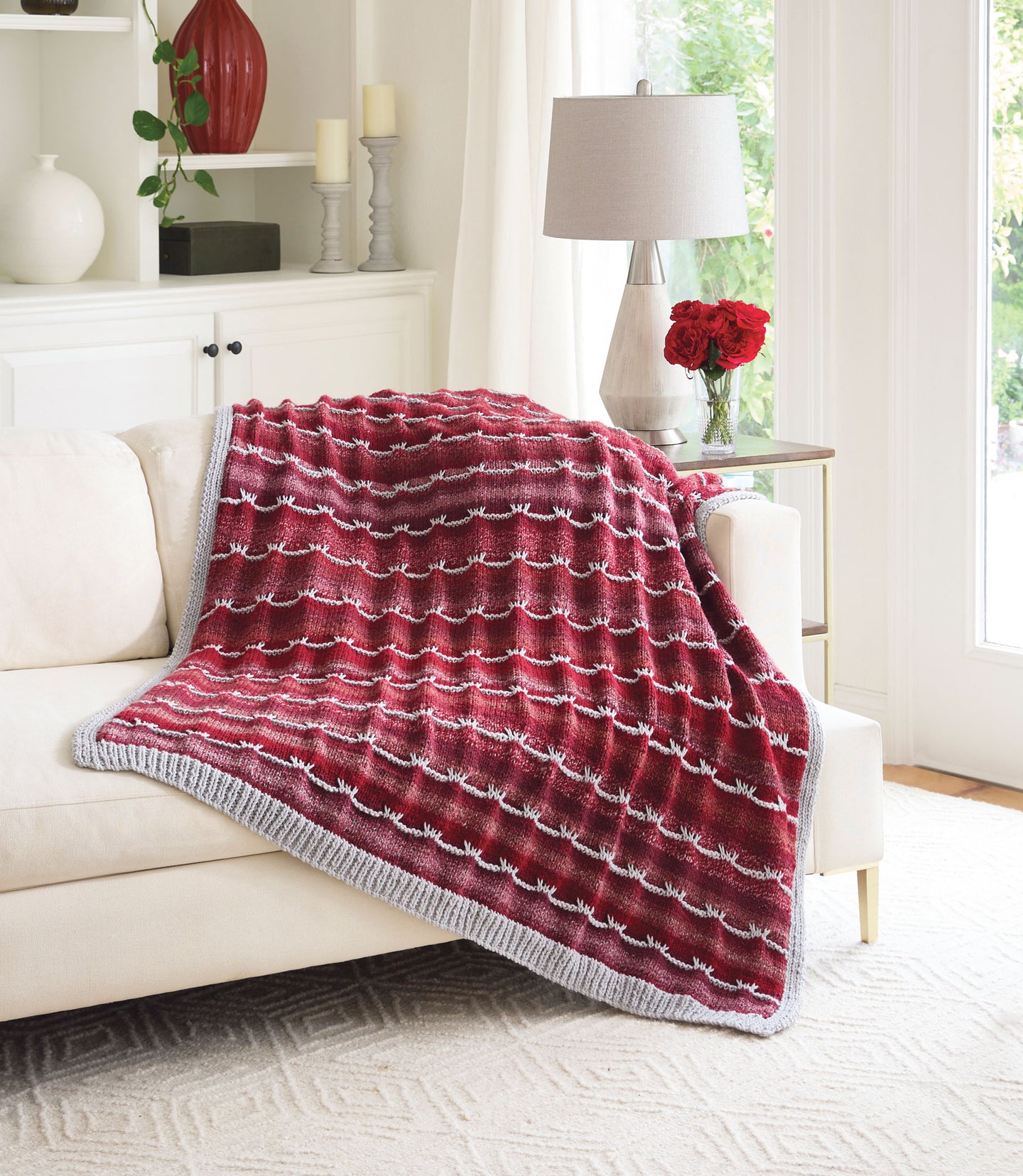Our 1st Place Contest Winner designed by Billie Birchfield. Wrap yourself in the delightful charm of this simple knit blanket. Kit includes Premier Puzzle yarn, Premier Basix Light Grey yarn and pattern. Requires 36" circ. needle size 10. Size 55 x 46". Easy Knit