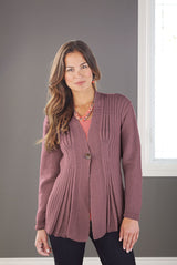 Des plis doux dans un fil léger pour flatter n'importe quelle silhouette. Le kit comprend le fil et le motif Mary Maxim Mellowspun DK. Bouton non inclus. Nécessite une aiguille circulaire de 32" de taille 3 (3,25 mm) et une aiguille circulaire de 36" de taille 6 (4 mm)