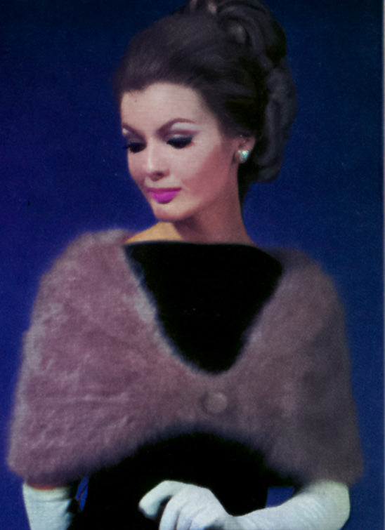 Knit this cape with our vintage pattern. Elegant and luxuriously soft cape to compliment your attire. Originally knit with Mohair, a bulky yarn that offered 50 yards per 1 oz skein at the time. Requires knitting needles in U.S. 30" circular needle size 11 (8 mm).