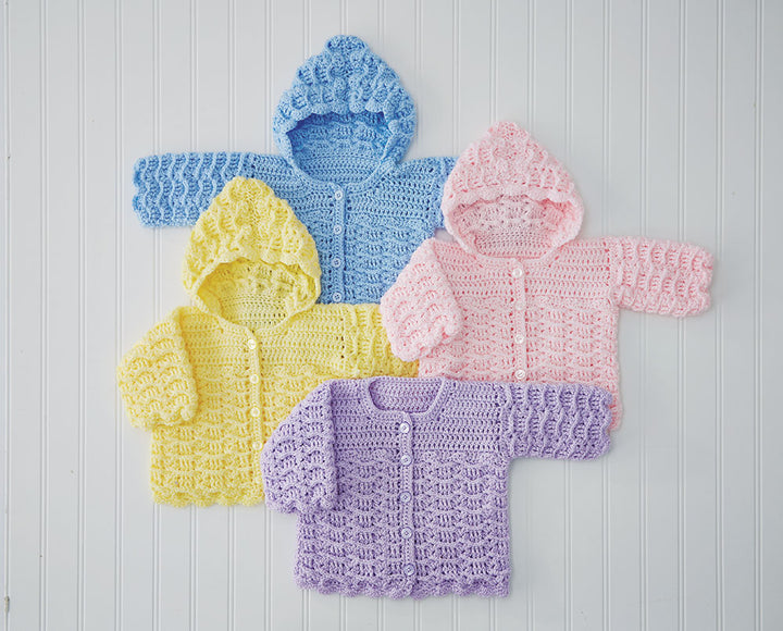 Baby Cardi to Crochet - Yellow is backordered and your entire order will ship as soon as it is back in stock.