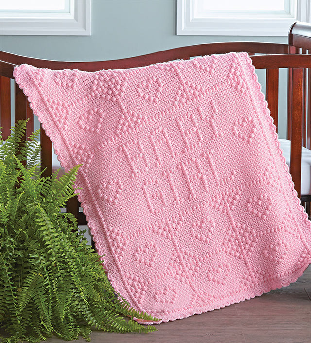 Experience the joy of creating a beautiful afghan for your baby girl or boy with our graph-style pattern. Created with 6 balls of Bernat Super Value (426 yds/7 oz) worsted weight yarn, an easy-care long-wearing, premium acrylic yarn. Explore our wide selection of worsted weight yarns, featuring the latest trending colors, and choose the perfect one for your project! Keep in mind yardage will vary. Crochet hook size U.S. G-6 (4.00 mm) needed. Finished dimensions 33 x 44" (84 x 112 cm) Intermediate crochet.