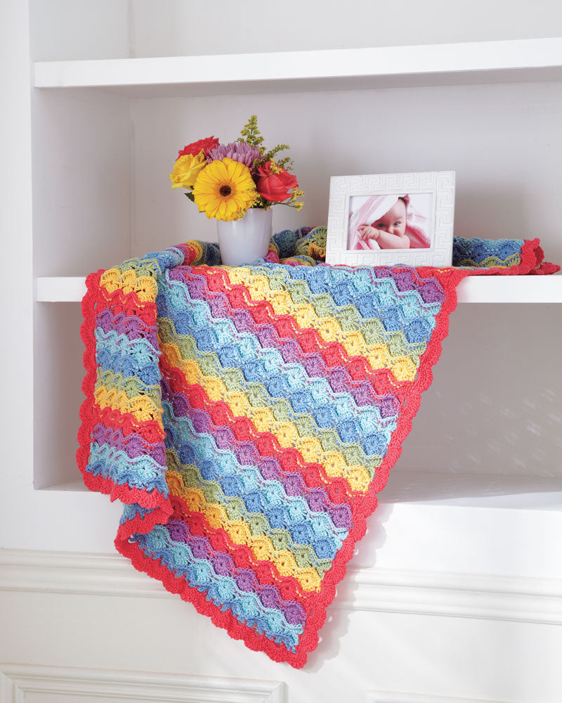 Crochet this baby blanket using DK/Sport weight yarn. Requires crochet hook size G-6 (4.00 mm).