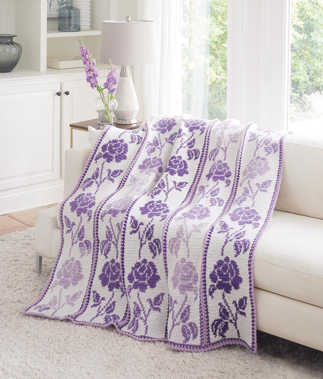 Bed of Roses Afghan - Violet Ombre/Soft White/Pale Plum is backordered and your entire order will ship as soon as it is back in stock.