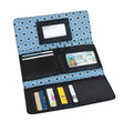 Show off your style this season with our exclusive, designer inspired, 100% cotton quilted bags and accessories! Features magnetic closure, zippered outside pocket, 2 ID windows, 11 slots for credit cards and 3 inside pockets. Size 9" x 4.5" x 1" closed. Contents shown not included.