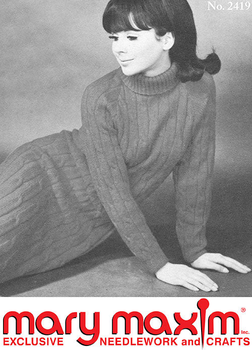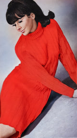 Craft this stunning Cable Dress with our classic Mary Maxim design. Stay chic with a cozy turtle neck and trendy raglan sleeves. This captivating knitted dress is a must-have for any fashion-forward woman. Easily knit and effortlessly chic! Created originally using Mary Maxim Mellowspun, a DK sport-weight that provided 210 yds per 2 oz skein. Discover the delightful array of sport-weight yarns we offer in today's trending colors, including Mary Maxim Mellowspun! Keep in mind yardage varies. Materials List: All sizes 26 oz. Requires knitting needles size U.S. 3 (3.25 mm) and 5 (3.75 mm), and double point needles size 2 (2.75 mm) and 3 (3.25 mm). Fits sizes 32-34, 36-38, 40-42—Intermediate knit.