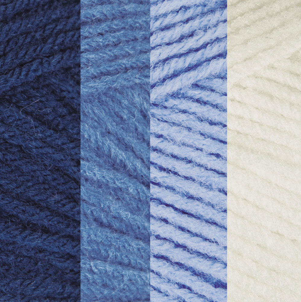 Kit includes Mary Maxim Maximum Value yarn and pattern.