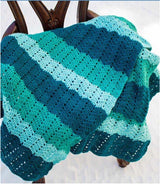 Designed by Nicki's Homemade Crafts. A classic chevron pattern worked in cool beachy colors. Kit includes Red Heart Super Saver yarn and pattern. Requires crochet hook H-8. Size 60 x 60". Easy Crochet