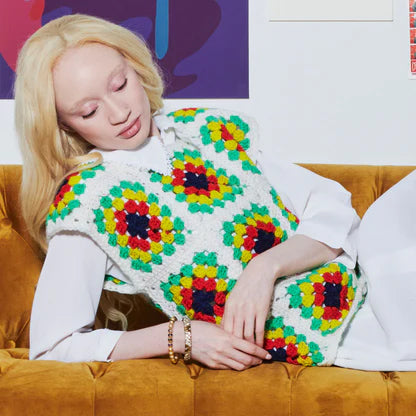Indulge in your creativity with our free Best In Vest Crochet T-Shirt Pattern! Get hip with a boho vest crafted using Red Heart All in One Granny Square and Red Heart Super Saver worsted weight yarns. Slip it over a simple top for a pop of color and style. Once you start stitching those squares, you'll be hooked and won't be able to put it down! And don't forget, there are plenty of other exciting projects to make with this amazing yarn! Materials List: Size XS/S/M/L/XL/2X - CC1 Red Heart All in One Granny Square Green Scream (2 skeins). Red Heart Super Saver CC2 Soft White (1 skein). Size 3X/4X/5X CC1 All in One Granny Square (3 balls), and CC2 R.H. Super Saver White (1 ball). Also needed a crochet hook size I/9 (5.5 mm). Fits sizes XS/S/M/L/XL/2X/3X/4X/5X—Easy crochet.