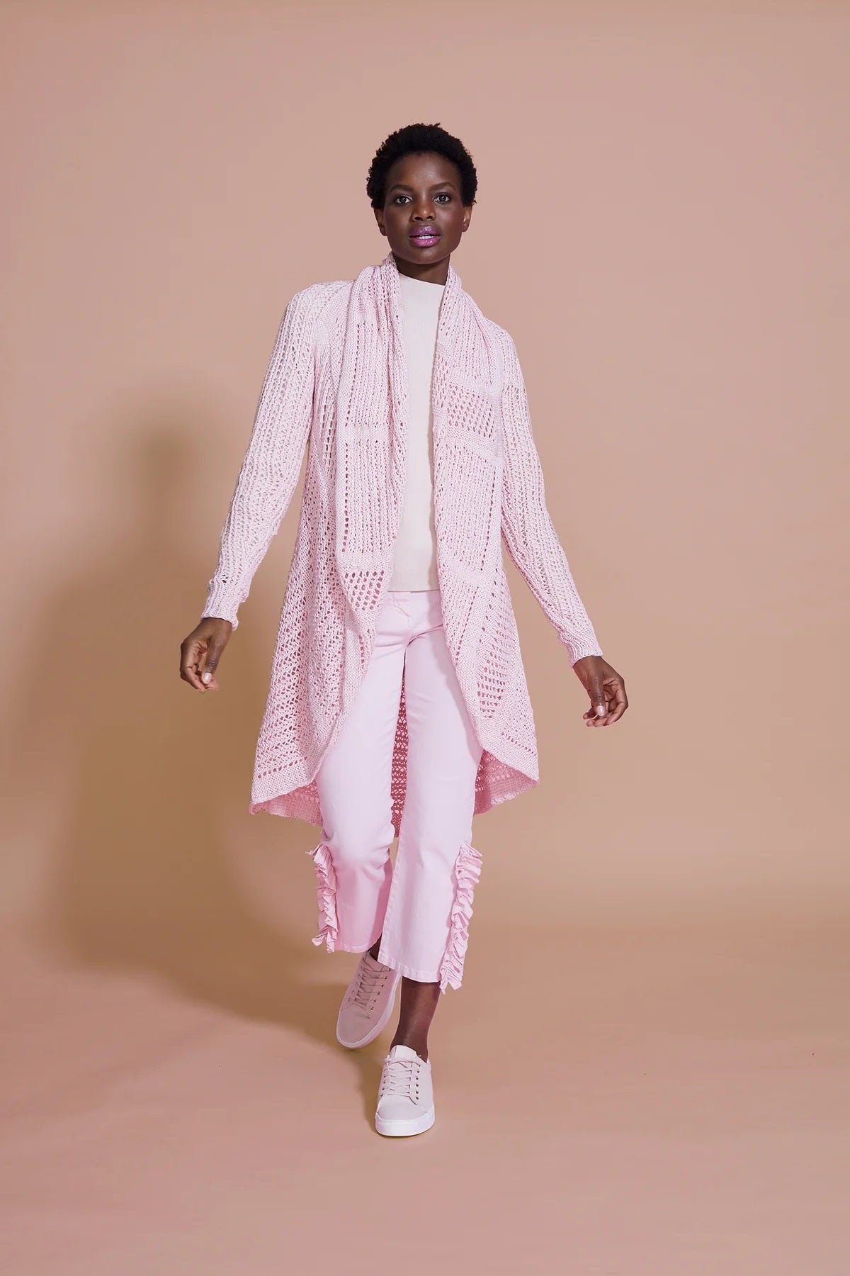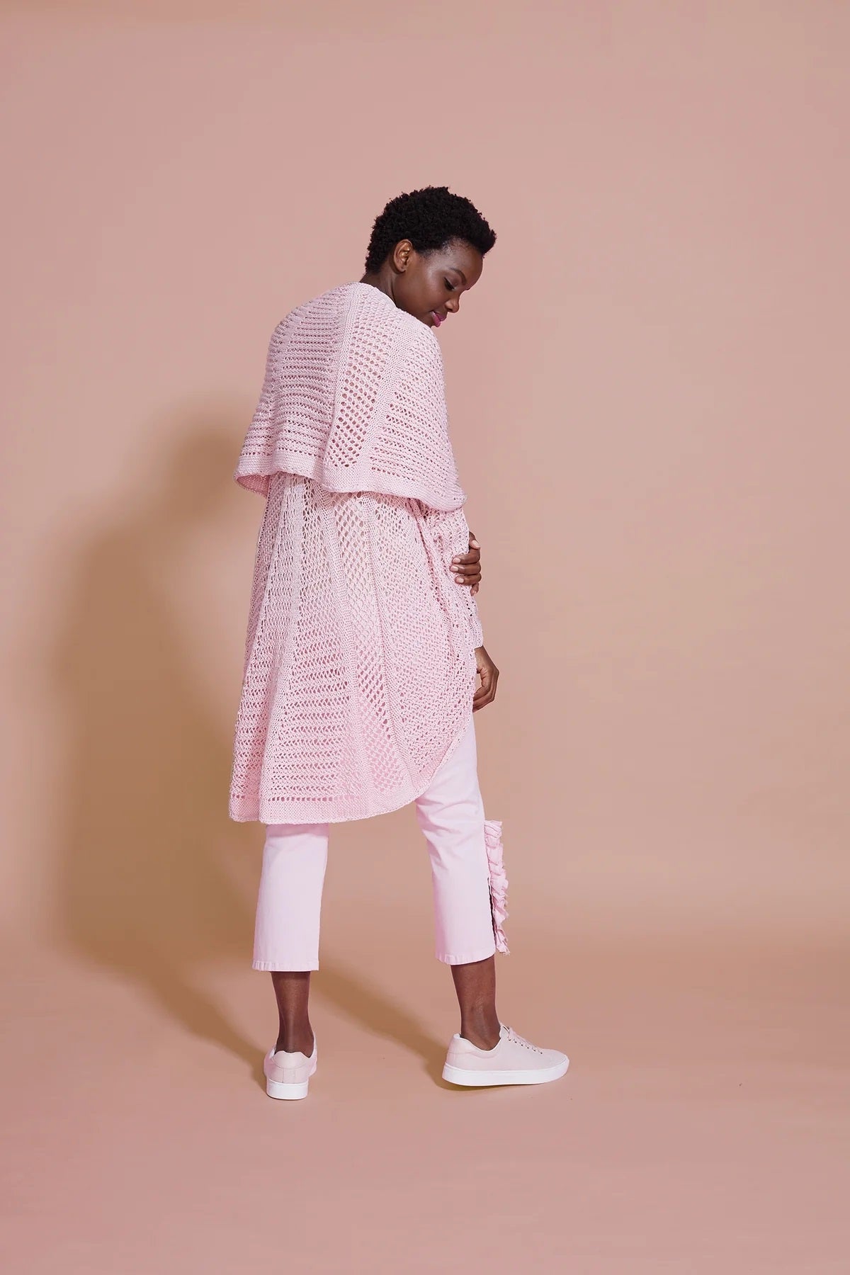 This Free Lemouth Cardigan Pattern features a wide shawl collar, high-low hemline and long sleeves. The lacy knit pattern allows for flexibility to dress it up or down for any occasion. Stylish and trendy, you'll be sure to make a statement in this cardigan. Created using Lion Brand Caboo yarn (no longer available) a DK sport weight yarn with 232 yds per 3.5 oz skein. With the wide variety of DK yarns available today, it's certain you'll find the perfect one for this project. Keep in mind yardage will vary. Required 6-8 balls and needles 7 (4.5 mm) and crochet hook size G-6 (4.0 mm). Sizes SM-XL. Intermediate+ Knit.