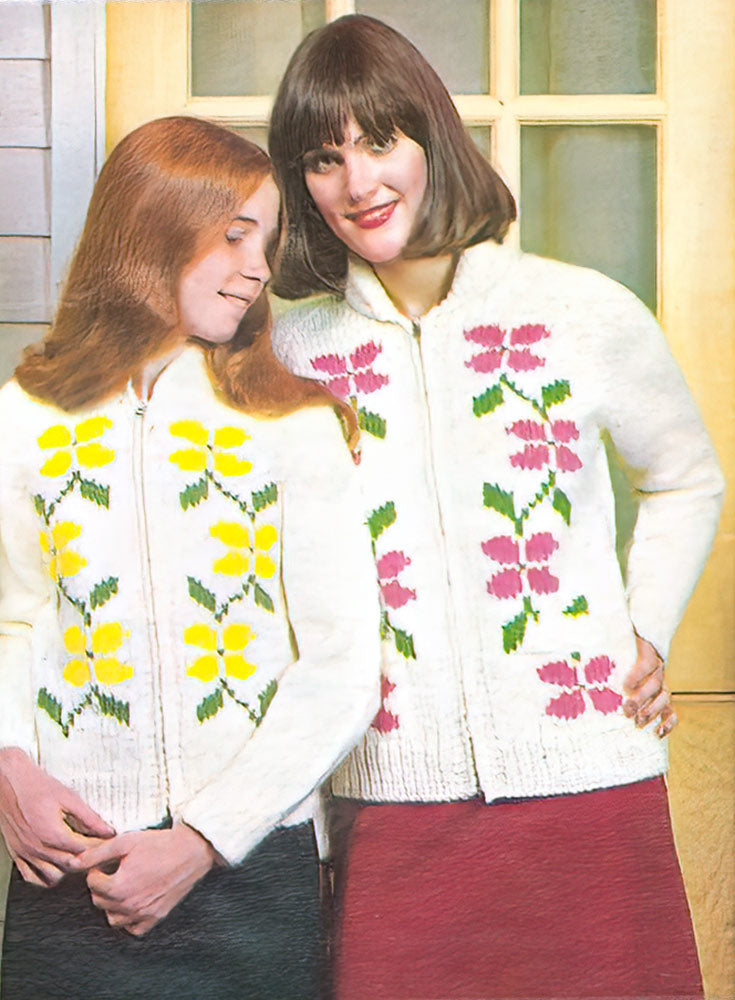 Knit this girl's cardigan with our vintage graph-style pattern. Features shawl collar, or windbreaker collar, long raglan sleeves, and button front. Color image scanned from 1960s catalog! This design was originally knit with Mary Maxim Northland bulky-weight yarn, which had 80 yards per skein. We now offer a great selection of bulky yarns to suit your style, including Mary Maxim Titan. Be aware yardage may be different. Requires U.S. 9 (5.5 mm) and 6 (4 mm) knitting needles. Fits girls sizes 8-10-12—Intermediate knit. Ladies' sizes sold here.