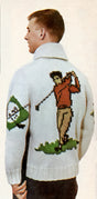 Show off your knitting skills when you step out on the greens in this cardigan! Knit with this vintage, easy-to-use graph-style pattern. Featuring raglan sleeves and shawl collar. Original yarn used was Mary Maxim Northland, with 80 yards per skein. We now offer a great selection of bulky yarns to suit your style, featuring Premier Basix for this project. Keep in mind, yardage may be different. Materials List: Sze 14-16 MC (8 skeins), Sz 18 MC (9 skeins). All sizes: Man's Pants, Flag & Sweater, Hat & Shoes, Grass (1 skein each). All you need are U.S. 6 (4 mm) and 9 (5.5 mm) needles to bring this garment to life! Also available in Ladies' and Men's sizes! Intermediate knit.