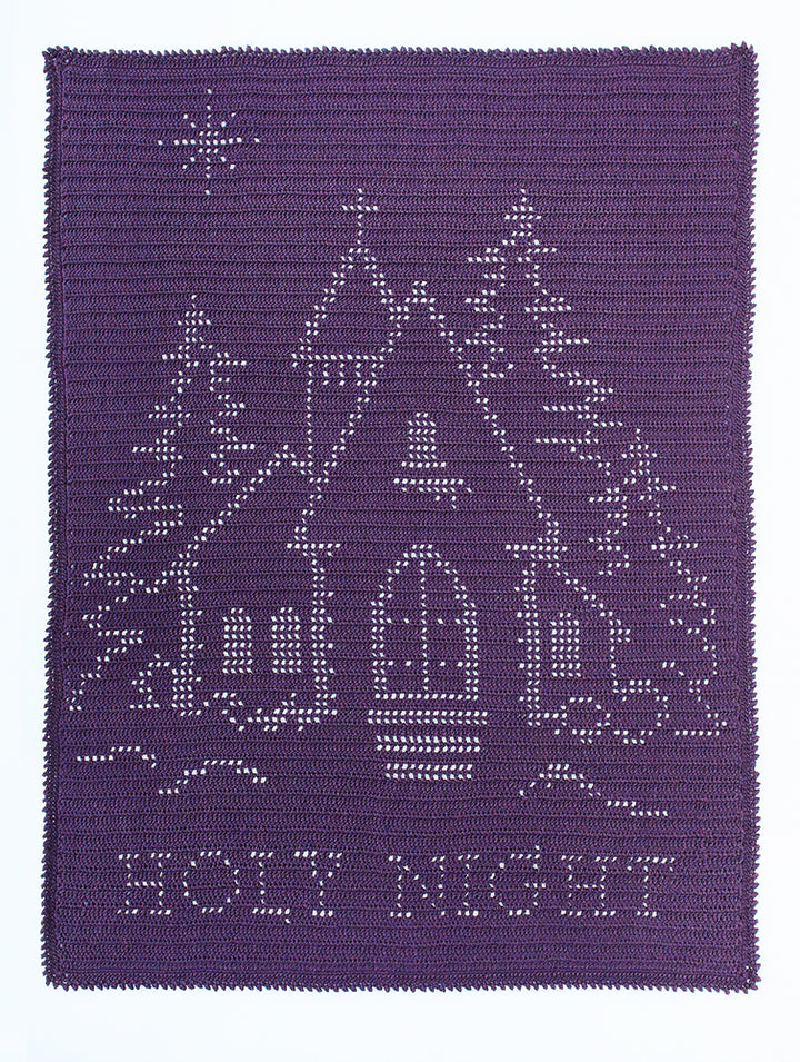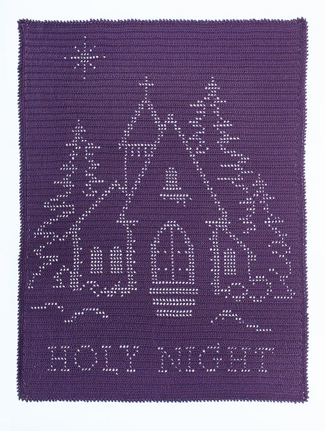 Beautiful filet throw reflects the quiet of the special night. Kit includes Mary Maxim Best Value yarn. Shown in Merlot.