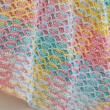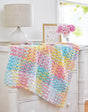 Reversible rainbow of color for any baby. Requires crochet hook H-8. Size 32" x 36".