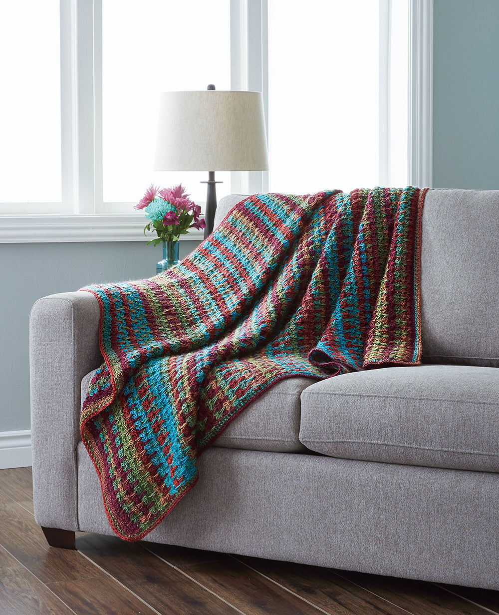 This interesting stitch pattern makes for a beautiful finished piece. Kit includes Mary Maxim Prism yarn and pattern. Finished size 48 x 60". Requires Crochet Hook H-8 (5 mm).