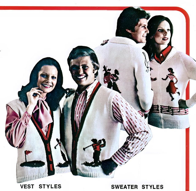 Craft a stylish sleeveless vest with our one-of-a-kind pattern featuring seven exciting graph designs! Pick your favorite motif—Golfer, Bowler, Football, Snowmobile, Horsehead, Whitetail Deer, or Pheasant—to showcase on the front while keeping the back simple. With so many fun options, your knitting project will be anything but boring! This fun design was created using Mary Maxim Starlette, which offered 140 yards per 2-oz skein, in this project. Discover our amazing selection of worsted-weight yarns to choose from, in today's trending colors, including Mary Maxim Starlette! Keep in mind, yardages will vary. Materials List Vest: MC Sz 32-34 (6 skeins) Sz 36-38 (7 skeins). CC1 (1 skein), CC2 (1 skein), knitting needles size U.S. 5 (3.75 mm) and 8 (5 mm). Fits sizes 32-34-36-38—Intermediate knit. Let the fun begin! Graph style cardigan patterns sold separately.