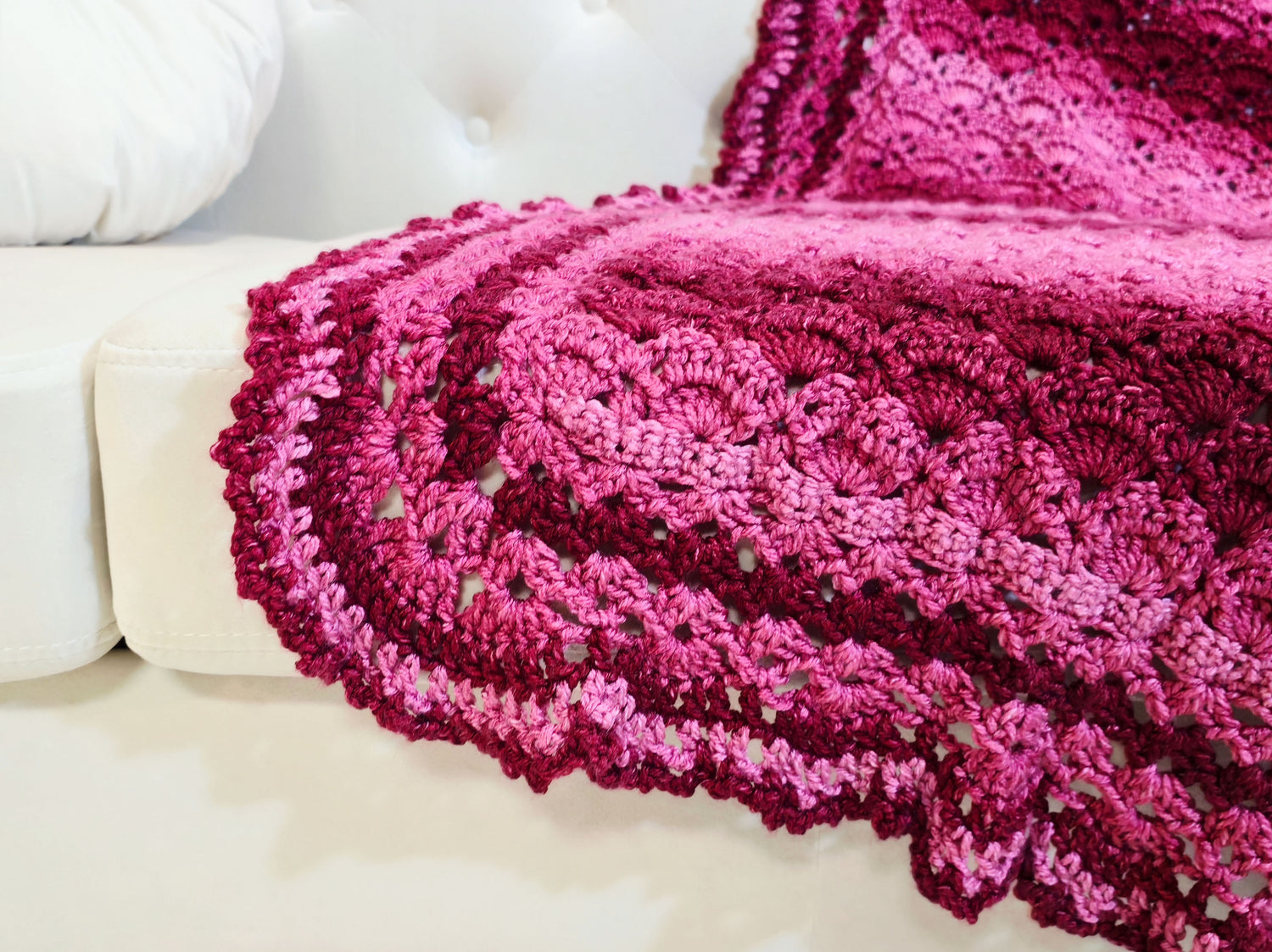 A cuddly soft blanket for your home decor. Kit includes Bag-O-Day Tonal Hues yarn and pattern. Size 54" x 68" Requires crochet hook I-9 (5.5 mm). Intermediate crochet.
