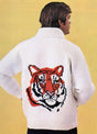 Knit this cardigan with the Tiger design using our graph-style pattern. Instructions for raglan or set-in sleeves, shawl, flat shawl, or windbreaker style collar are included. Originally crafted with Mary Maxim Titan or Northland wool with 80 yards per skein, we now offer a great selection of bulky yarns to suit your style. Be aware yardages may be different. Materials List: Sz 38-40 MC (13 skeins), Sz 42-44 (14 skeins).  All sizes: CC1 (30 yds), CC2 (5 yds), CC3 (5 yds), CC4 (35 yds). You'll need U.S. 7 (4.50 mm) and 4 (3.50 mm) needles to bring it together. Fits sizes 38-40-42-44—Intermediate knit.