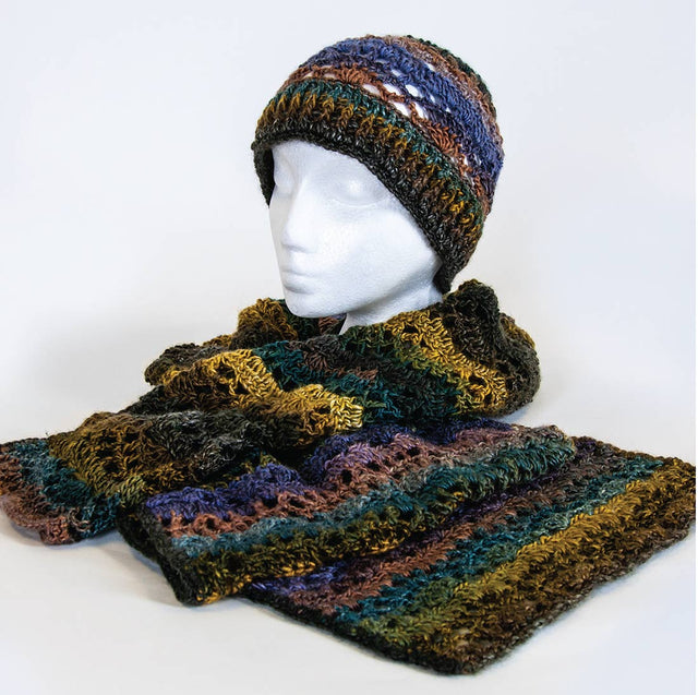 Create a stunning, matching wrap and hat with our pattern. Created for the 2018 Mary Maxim Crochet Club, using the wonderfully vibrant colors in Milan yarn by Mary Maxim, a #3 DK sport-weight yarn that provided 219 yds per 3.5 oz skein and a crochet hook size H/8 (5 mm). We highly recommend Mary Maxim Prism as a superior substitute! Discover all of our sport yarns for the perfect choice for your project. Just keep in mind yardages will vary. Finished sizes: Hat 20" (51 cm) circumference, Wrap 14 x 70" (35.5 x 178 cm)—Intermediate knit.