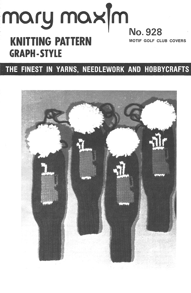 Knit up some stylish golf club covers with our classic 1960 pattern. Mary Maxim Starlette worsted weight yarn was the go-to choice back in the day, offering 280 yards of yarn per skein. We offer a great selection of worsted weight yarns today, including Mary Maxim Starlette. Please note that colors and yardage have changed since then. You'll need size U.S. 6 (4 mm) and 7 (4.5 mm) knitting needles to get the job done. Shield your clubs from the elements and have a blast! Get matching socks pattern! PDL929!