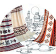Bring a touch of southwestern charm into your space with this delightful Pueblo afghan (pictured center) pattern. Our vintage-inspired design makes it easy to craft a show-stopping blanket that's sure to become a cherished favorite. Perfect for cozying up or displaying with pride, this graph-style pattern guides you through every stitch for a beautiful, handmade result. Created using Mary Maxim Mellowspun, a DK sport-weight that offered 420 yds per 4 oz skein at the time. Shop our entire line of sport yarns, including Mellowspun, and find the perfect color combinations to make this come to life! Please note that yardages will vary. Materials List: MC (12 oz.), CC1 and CC2 (12 oz each), knitting needle size 6 (4.25 mm), and crochet hook size G/6 (4.25 mm). Finished size approx. 48 x 68" (122 x 173 cm)—Intermediate knit. Shop for these other great designs: PDL6852 Apache (pictured left) and PDL6845 Navajo afghan patterns (pictured right), sold separately.