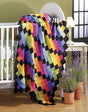 Squares of vibrant colors to crochet using worsted weight yarn. Designed originally using Caron Simply Soft yarn, which offered 157 yds per 3 oz skein at the time. Explore our fantastic range of worsted yarns, featuring Simply Soft, and let your creativity shine with colors inspired by your favorite home decor! Keep in mind yardage will vary. Materials List: MC Black (5 skeins), and 2 skeins each of colors: A Watermelon, B Mango, C Lemonade, D Limelight, E Berry Blue, F Grape, and crochet hook size I/9 (5.50 mm). Finished size 43 x 60" (109 x 152.5 cm)—Intermediate crochet