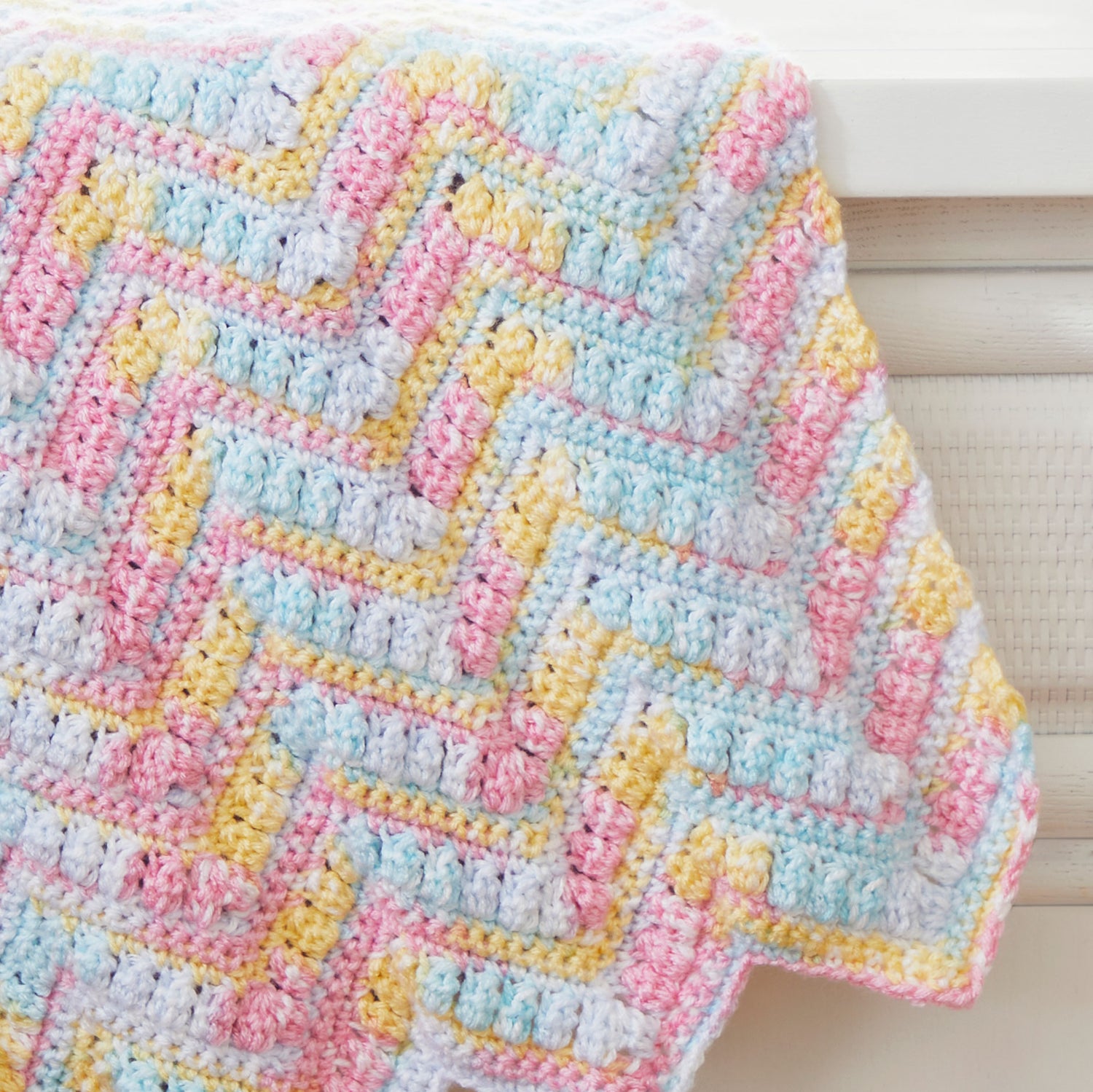 Sweet blankets for your bundle of joy. Kit includes Mary Maxim Baby Value yarn and pattern to make set of 4. Requires crochet hook H-8 (5 mm). Approximate size 16" x 18". Intermediate crochet.
