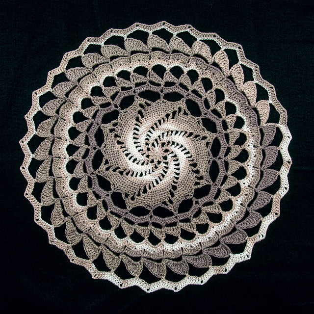 Crochet this exquisite table topper with our exclusive pattern! Features instructions for a small 20.5" and large 31.5" wide are included! This exceptional design was created using Mary Maxim Fresh DK sport-weight yarn for the Mary Maxim Crochet Club. Mary Maxim Fresh had little to no fuzzy fibers, was smooth, and offered a bit of a sheen. Each skein offered 290 yds per 3.5 oz ball and was 100% acrylic. Shop our entire selection of sport-weight yarns for this project, keeping in mind yardage differences. Materials List: 3 skeins and crochet hook size E/4 (3.50 mm). Intermediate crochet. Note the mode was crocheted by a left-hander, so the direction of the swirls will appear opposite to those crocheted by a right-hander.